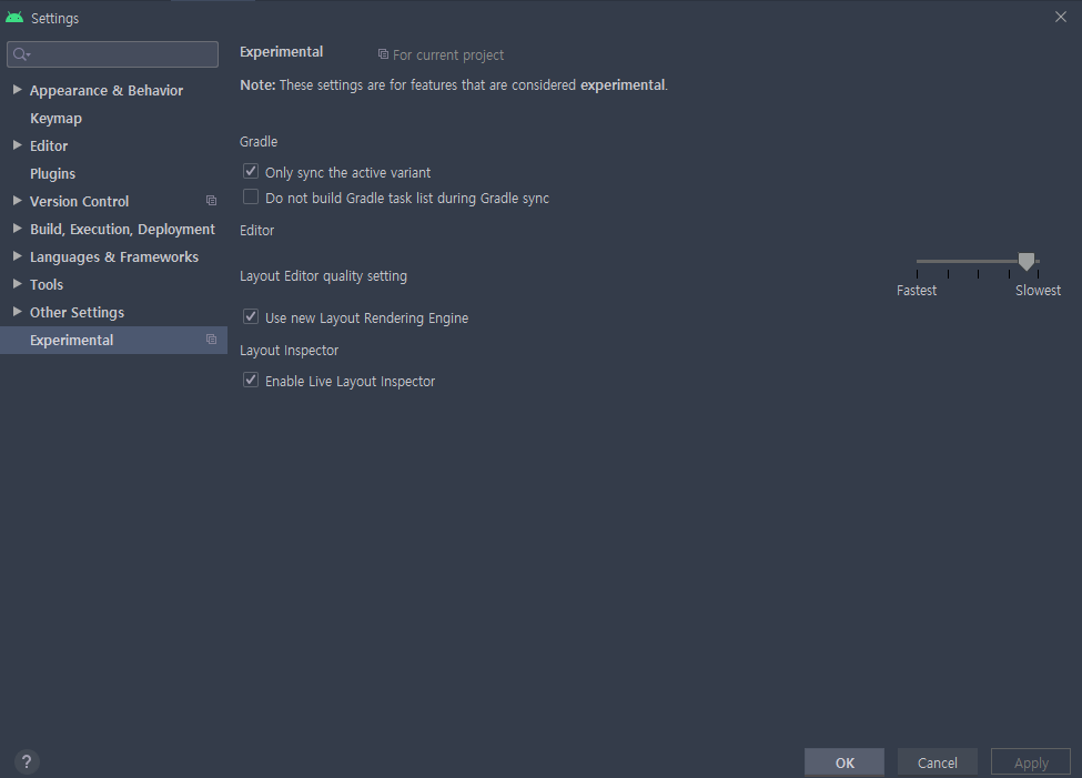 Android Studio 4.0 버전에서는 새로운 렌더링 엔진을 사용한다고 합니다. 이를 활성하지 않을 경우 editText가 rendering이 이루어지지 않습니다.