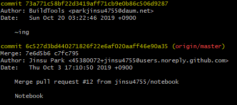 이것을 확인하기 위해 git에서 commit 이력을 보여주는 log를 사용하면